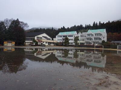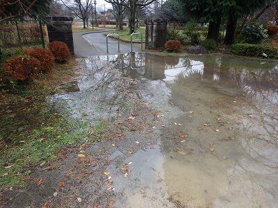 水たまりが心配でしたが、校門付近は何とか通ることができる状態でした。