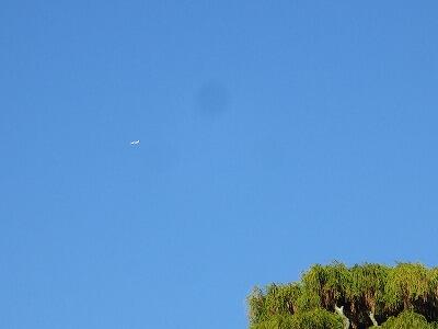 梢のはるか上空を飛行機(定期便)が悠然と飛んでいました。