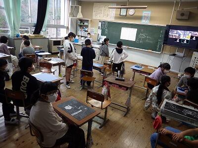 東京大田区の大森第4小学校との「リモート交流」授業でした。