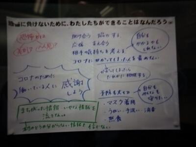 各教室でも、「恐怖」に負けないために....というテーマで活発に意見交換がありました。