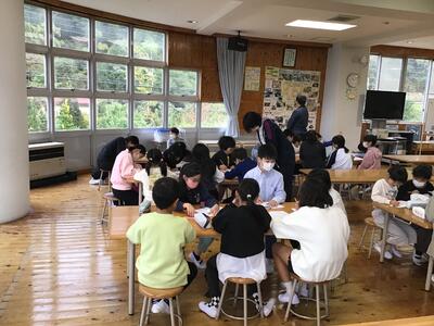 今日の業間に「全校遠足」の班ごとの話合いが行われました。まずは、全校遠足での各班ごとの目当てを決めました。その後、班の中での係を決めました。上級生が中心となって話合いをまとめ、みんな全校遠足がより楽しみになったにではないかと思います。