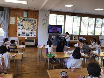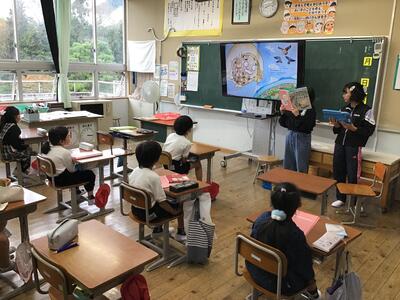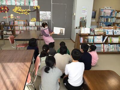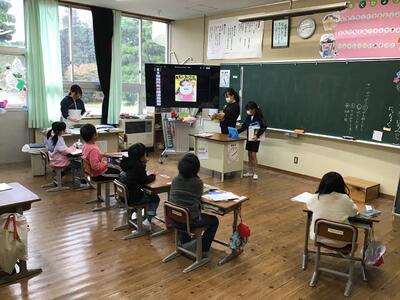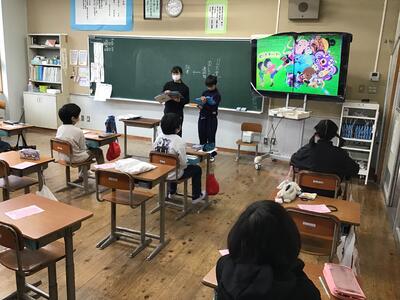 今日の朝の学習の時間に図書委員会の児童が各教室に行きました。下級生にも楽しんでもらうために、タブレットを使って絵を画面で見せながら読み聞かせを行いました。どの教室でもとても上手に読み聞かせをすることができました。また、聴いている児童も真剣に耳を傾けていました。