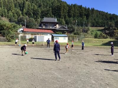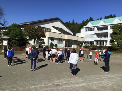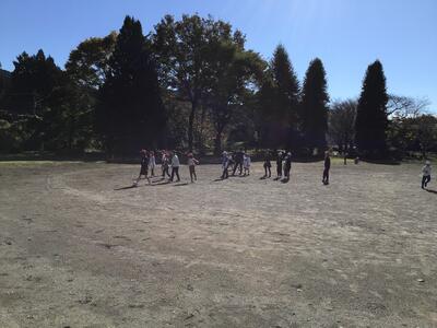 今日の業間に、運動レクリエーションが行われました。これは、体力向上のために全校生が運動する時間を確保したものです。今日は、来週予定されている全校遠足の縦割り班ごとに遊びました。ドッジボールやケイドロなどで仲良く運動しました。寒い中でしたが、みんな笑顔で楽しい時間を過ごしました。