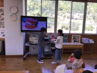 今日は良い歯の日でした。今週はカラーテスターの配布や歯磨きカレンダーなど、良い歯を守るための取り組みをしてきました。今日は、給食後の歯磨きの時間に代表児童がみんなの前に出て、歯の模型を使って、良い歯磨きの仕方について話してくれました。これからもみんなで良い歯を守ってほしいと思います。