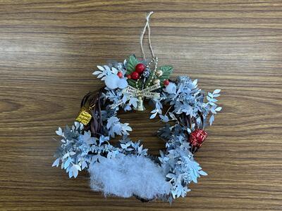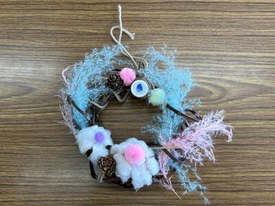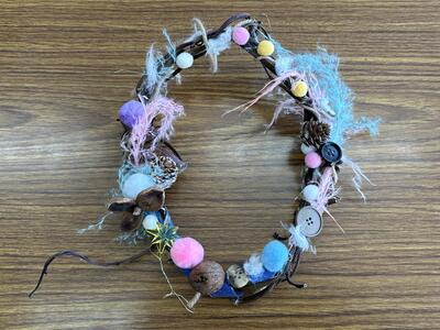 その後、取ってきた材料を使って、リースの飾り付けをしました。どれも素晴らしいものです。後日、全員分を校内で披露すると思います。