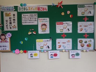 本校の最新の調査では90%の児童が「毎朝、朝食を食べる」と回答しています。