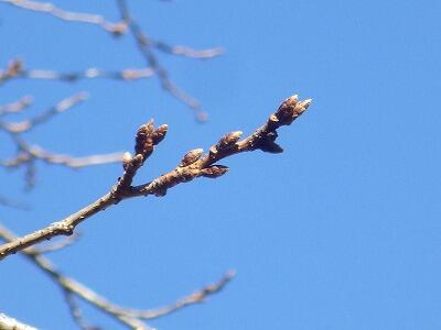 紅葉や木の実に目を向けていたら、桜のつぼみにも気づきました。