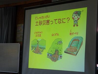 訓練後、5,6年生が「山地防災講習会」がありました。
