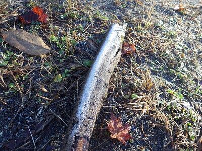 校庭に落ちていた木の枝には、8時を過ぎても「霜」が残っていました。