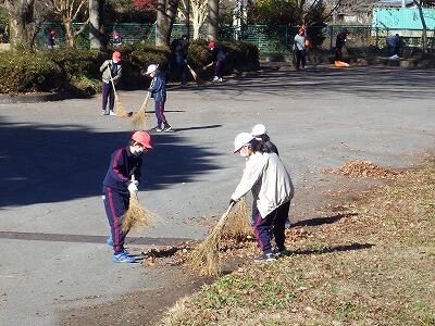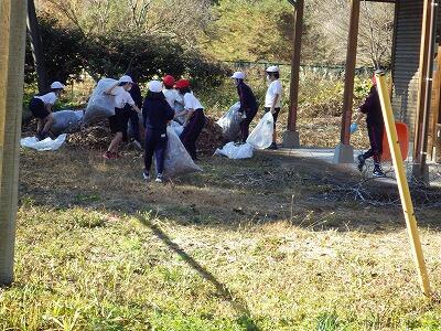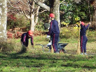 落ち葉をたくさん回収し、校地内も、せせらぎプール駐車場もすっきりしました。