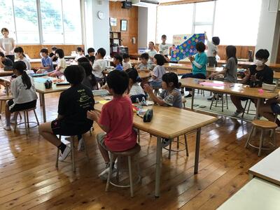 今日は、7月7日、七夕の日です。「七夕集会を開きましょう」という高学年児童の意見から、七夕集会が開かれました。「みんなが楽しんでくれること」「七夕について知ってもらうこと」を目標に、いろいろなアイデアを出し計画しました。