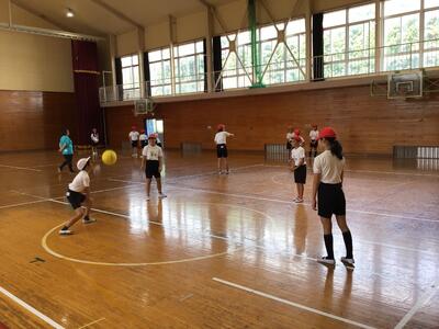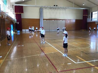 3時間目の体育は、3〜6年の合同で行いました。各チームに分かれて、ソフトバレーボールを落とさないように練習しました。事前に6年生が考えたチームで楽しく活動し、体育館に元気な子供たちの声が響いていました。