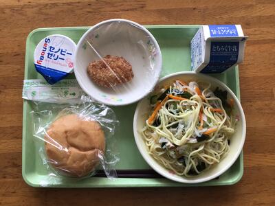 本日の給食は、まるパン、ささみカツ、冷やし中華、セノビーゼリーでした。9月に入っても暑い日が続いています。冷やし中華はぴったりでした。