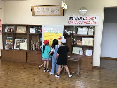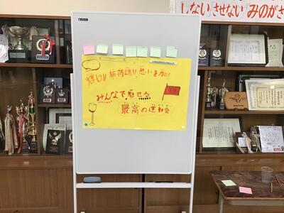 運動会のスローガンが昇降口に掲示されました。「輝け!板荷魂!思いを力に!みんなで魅せる 最高の運動会」です。板荷魂ってなんだろう?最高の運動会ってどんな運動会だろう?このスローガンを達成するにはどうすればいいのだろう?どんなことを頑張ればいいのだろう?子供たちはいろいろ考えて、自分の頑張りたいことを付箋紙に書いてスローガンの周りに貼っていっています。当日うまくいくかどうかよりも、目標達成のためにどうすればいいかを自分で考えて実行してくことに価値があります。本校の身につけさせたい資質・能力である「思考・判断・表現力」を伸ばすために、子供たちにじっくりと時間をあげて考えさせていきます。当日の最高の運動会を楽しみにしていてください。