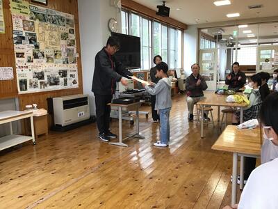 今日の昼休みに表彰集会が行われました。今日は、陸上で素晴らしい成績を収めた児童の表彰でした。校長からは、始業式に話した今年頑張ってほしいことの「自分の良いところを知ろう」のために①好きなこと、得意なことを夢中になってやろう、②色々なことにチャレンジしようということをもう一度話しました。今回の表彰された児童も自分な好きなことを頑張って、チャレンジしたことが1番素晴らしいことだと思います。板荷小みんなで、何かに夢中になってチャレンジして行くI年間にしていきたいと思います。