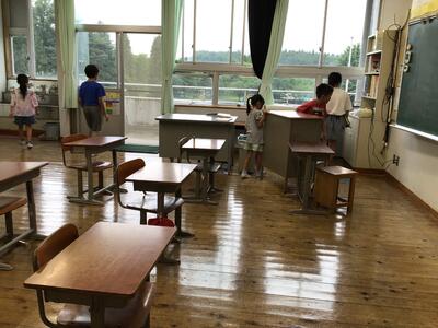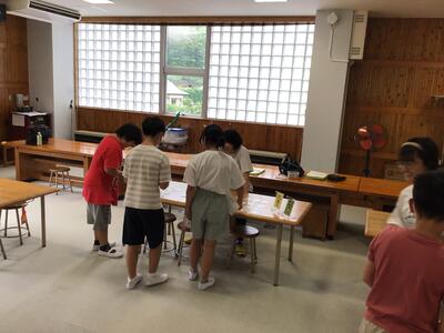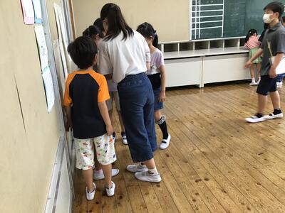 7月12日の業間に、高学年が企画した「七夕集会」が行われました。全校生を5班に分けて、どこかの教室に隠してある星を探しました。星には当たりやハズレがあります。子供達はみんなで仲良く星を探していました。学期末の楽しい集会になりました。