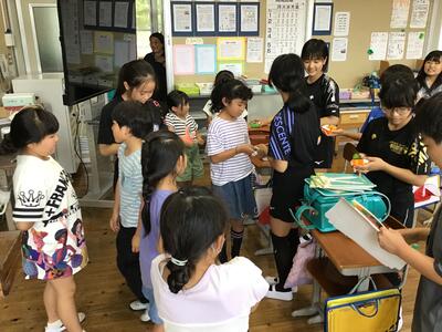 今日の6校時に、2年生が育てた野菜を6年生におすそ分けしました。2年生が育てている野菜は6年生の教室の前にあり、野菜の状態を6年生がよく見て知らせてくれていたそうです。そのお礼で、2年生が6年生に野菜を渡しにいきました。野菜を渡した2年生の優しさと、そう思わせるこれまでの6年生の行いに心が温かくなりました。