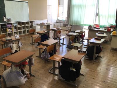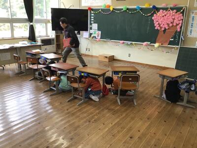 今日の2校時に避難訓練が行われました。今回は学年も変わったので、地震後に火事が発生したことを想定し、避難経路の確認などを行いました。地震で机の下に体を入れ、火事の発生後はハンカチで口を覆って避難しましたがとてもスムーズにできました。