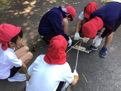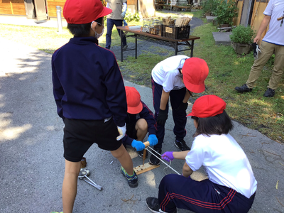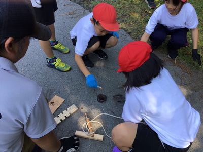 2日目最初の活動は火おこし体験です。火を起こすのは難しかったですが、コツを掴んで、みんなで協力して火がつきました。