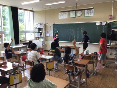 本日、4、5年生が2、3校時に野鳥観察に行きました。学校支援ボランティアの方を講師に招いて、学校付近の野鳥の様子を確認しました。普段何気なく見ている鳥ですが、意識して見るとセグロセキレイやダイサギなど、様々な種類の鳥が観察できました。観察が終わったら、教室で今日見られた鳥の確認が行われました。講師の先生が鳥のことを詳しく知っていて、子供たちも驚いていました。暑い中、板荷の自然の素晴らしさを教えていただき、ありがとうございました。4、5年生の皆さん、大変良い勉強になりましたね。