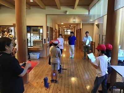 昨日の雨で心配されましたが、今日は素晴らしい天気になりました。全員参加で3、4年生の自然体験学習が行われます。朝、お家の人や先生方に見送られながら、自然体験交流センターに出発しました。