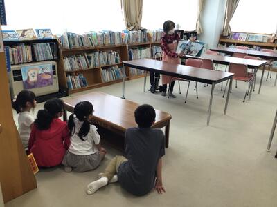 今日は月に1度のKLVのお話会でした。今年度から自分が聞きたいお話の場所に行く選択制が再開されました。今日のお話は、「ちいさなちいさなヤクのガーティー」「きょうはだめでもあしたはきっと」「うごきません」「かえるをのんだととさん」でした。どの場所でも真剣にお話を聞いて楽しんでいました。KLVの皆さん、ありがとうございました