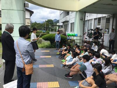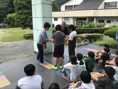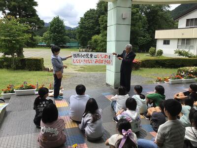 本日の業間に、人権擁護委員さんと市役所の方に来ていただき「人権の花贈呈式」が行われました。人権擁護委員さんからは、人権の大切さを教えていただきました。人権を考えながら、花も大切に育ててほしいというお話をしていただきました。6年生が代表して、板荷小では人権を大切にして花を育てていくことが発表されました。これからみんなで、大切に育てていきます。