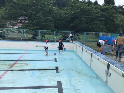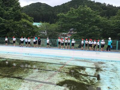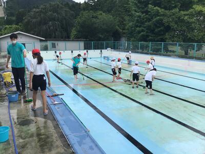 本日の5校時に「プール清掃」を行いました。2校時の予定だったのですが、天候が良くなかったので5校時に変更しました。急な変更にも関わらず、一洗舎社クラブの皆様にもボランティアとしてご協力していただき、全校生がそれぞれの分担場所を一生懸命綺麗にしました。児童の皆さん、今日はお疲れ様でした。暑くなってからのプール学習を楽しみにしてください。一洗舎クラブの皆様、ありがとうございました。