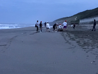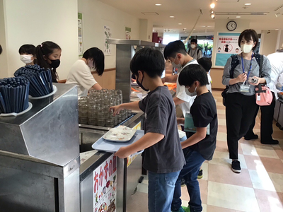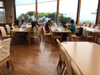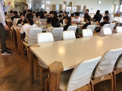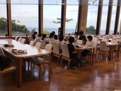 オリエンテーションが終わって美味しいお昼ご飯です。午後は海浜探検ビンゴゲームです。