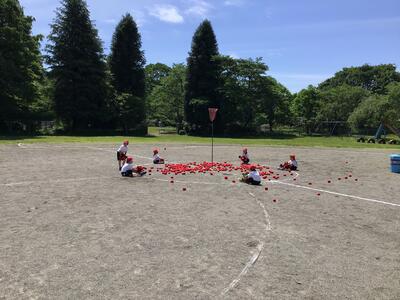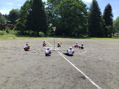 1、2、3年生は運動会練習で玉入れをやっていました。