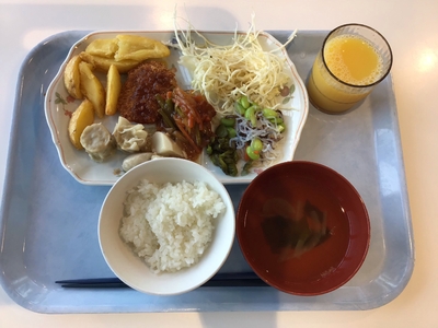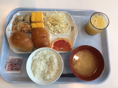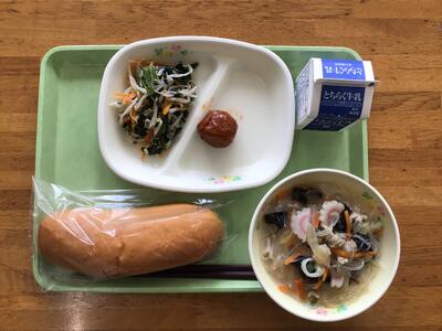 本日の給食は、ミルクパン、牛乳、肉団子、もやしのナムル、タイピーエンでした。みんなで美味しくいただきました。