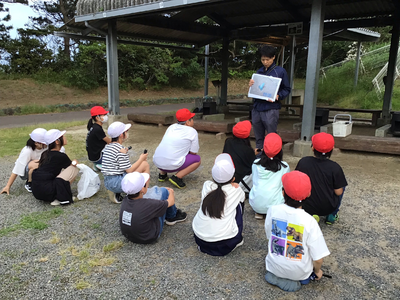午後は、菊西小の5年生と仲良く、海浜探検ビンゴゲームをしました。