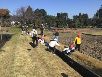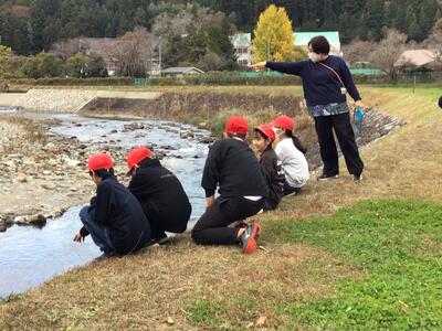 本日、菊沢西小学校の児童との交流学習で、雑木林での活動を行いました。この雑木林は菊沢西小学校の保護者の方が管理をしてくださり、様々な自然体験やアスレチックの活動ができる場所でした。最初にお互いに自己紹介をしました。その後、魚取りや虫取りなどを一緒に行いました。