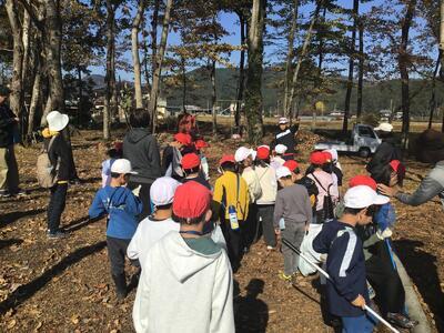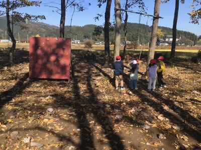 その後は、雑木林の遊具で一緒に遊びました。最初は少し遠慮している感じもしましたが、時間がたつにつれて、板荷小の児童と菊沢西小学校の児童が一緒に遊ぶ様子が見られました。