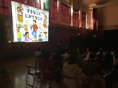 スライド絵本は、綺麗で大きなスライドに合わせて朗読をしてくださいました。一人一人が、今のままの自分でいいんだよと励ましてくれるような内容でした。