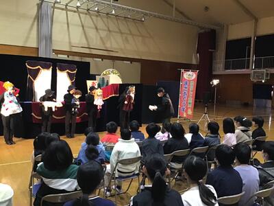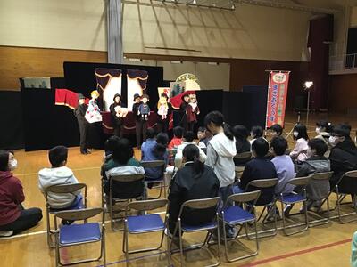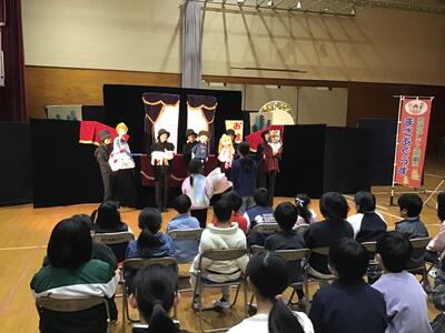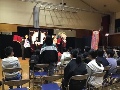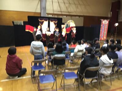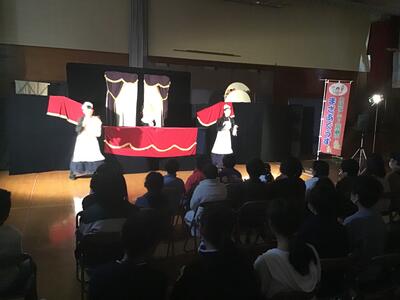 本日「まざあぐうす」の皆様による演劇鑑賞が行われました。スライド絵本と人形劇の2つの作品を見せていただきました。