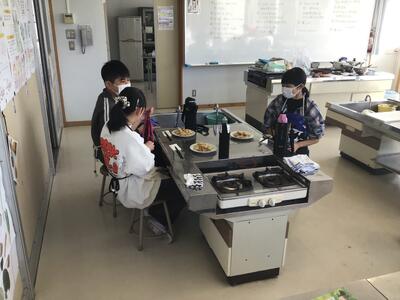 今日は6年生の調理実習でした。さすが6年生という感じで、包丁の使い方も上手でした。それぞれのグループで決めた料理を、役割を分担して作りました。ジャーマンポテトや野菜のベーコン巻き、目玉焼きなど、メニューも豊富でさすがだなと感じました。「上手だね」と声をかけると、「家で酢豚作りました」と話してくれた児童もいて、感心してしまいました。最後はみんなで食べて、楽しい時間を過ごしました。