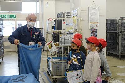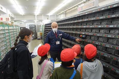鹿沼郵便局の見学では、郵便の仕分けの様子に興味津々。郵便局の方の説明を真剣に聞き、たくさん質問もできました