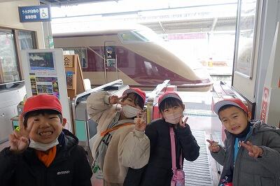 ワクワクどきどきの新鹿沼駅。切符も自分で買いました「ゴールドのスペーシアだ。」「リバティもあるよ。」雪の関係で、駅には大好きな列車が、たくさん停車していました。