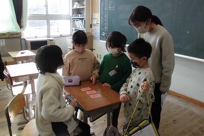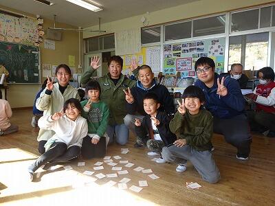 テレビ番組の取材で、U字工事の福田さんと益子さんが来校しました。子供たちと一緒に板荷かるたを行い、楽しい撮影になりました