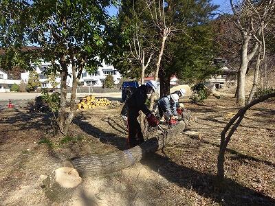 鹿沼市の作業班の方々が、危険木の伐採をしてくださいました。校庭の樹木が老木化し、強風が吹くと枝が折れて落下し、倒木の危険もありました。(立ち入り禁止の場所にしていました。)