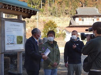校庭の旧幕府人参製作所跡での取材。子供たちも、地域の歴史や文化を学ぶ機会になりました。