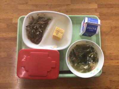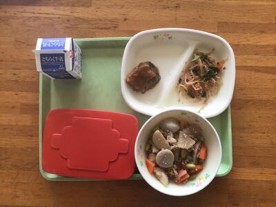 今日の給食は、ご飯、牛乳、厚焼き卵、ごぼうのしぐれ煮、豆腐となめこの味噌汁でした。なめこは食物繊維がたくさん含まれています。お腹の掃除をしてくれる食材だそうです。今日もおいしい給食でした。
