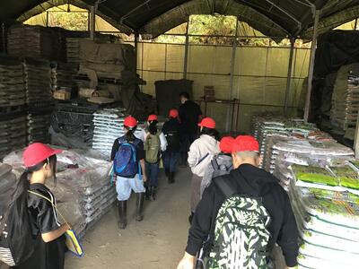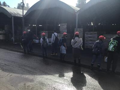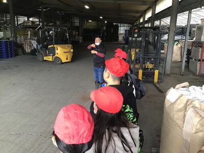 その後、土をためたり、加工したりする場所を見学させていただきました。様々な細かい作業があったり、機械を使って作業を進めている工程があったりして、子供達も驚いていました。