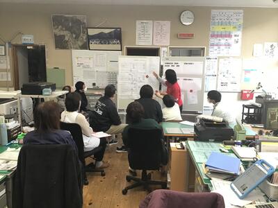 放課後は、職員が自分達の動きを振り返り、反省を行いました。基本的な動きや役割はマニュアルで決まっていますが、実際にシナリオ無しで動くとコミュニケーションを取りながら連携をとることの難しさを感じました。最上位目標は児童の命を守ることなので、そのためにどんなことに気をつけ、これから何を意識していけばいいかを確認しました。