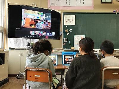 2年生が、楡木小学校の2年生と交流授業を行いました。オンラインでの授業でしたが、タブレットを活用しながら学ぶ両校の子供たちは、笑顔で交流することができました
