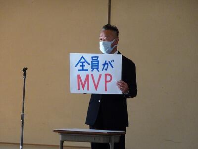 校長からは、「サッカーワールドカップのMVPはアルゼンチンのメッシ選手でしたが、板荷小学校の2学期のMVPは59名の子供たち全員です。一人一人がよくがんばりました。ブラボー」という話をしました