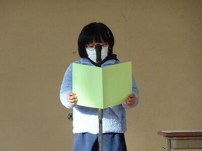1月10日、第3学期がスタートしました。始業式では、3年生と4年生の代表児童が、3学期にがんばりたいことを堂々と発表することができました