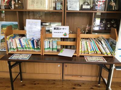 家読(うちどく)という家庭で親子一緒に読むのに適した本が置かれています。いつでも、誰でも借りられるようになっています。