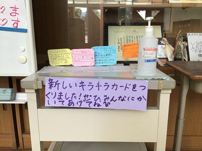 本校では、「キラキラカード」という、友達の良いところや良い行いを書いて相手に渡すカードがあります。今回、児童が自分たちでデザインしてみるということで、リニューアルされました。友達にカードを渡したい時は、ここから自由に持って行くことができます。
